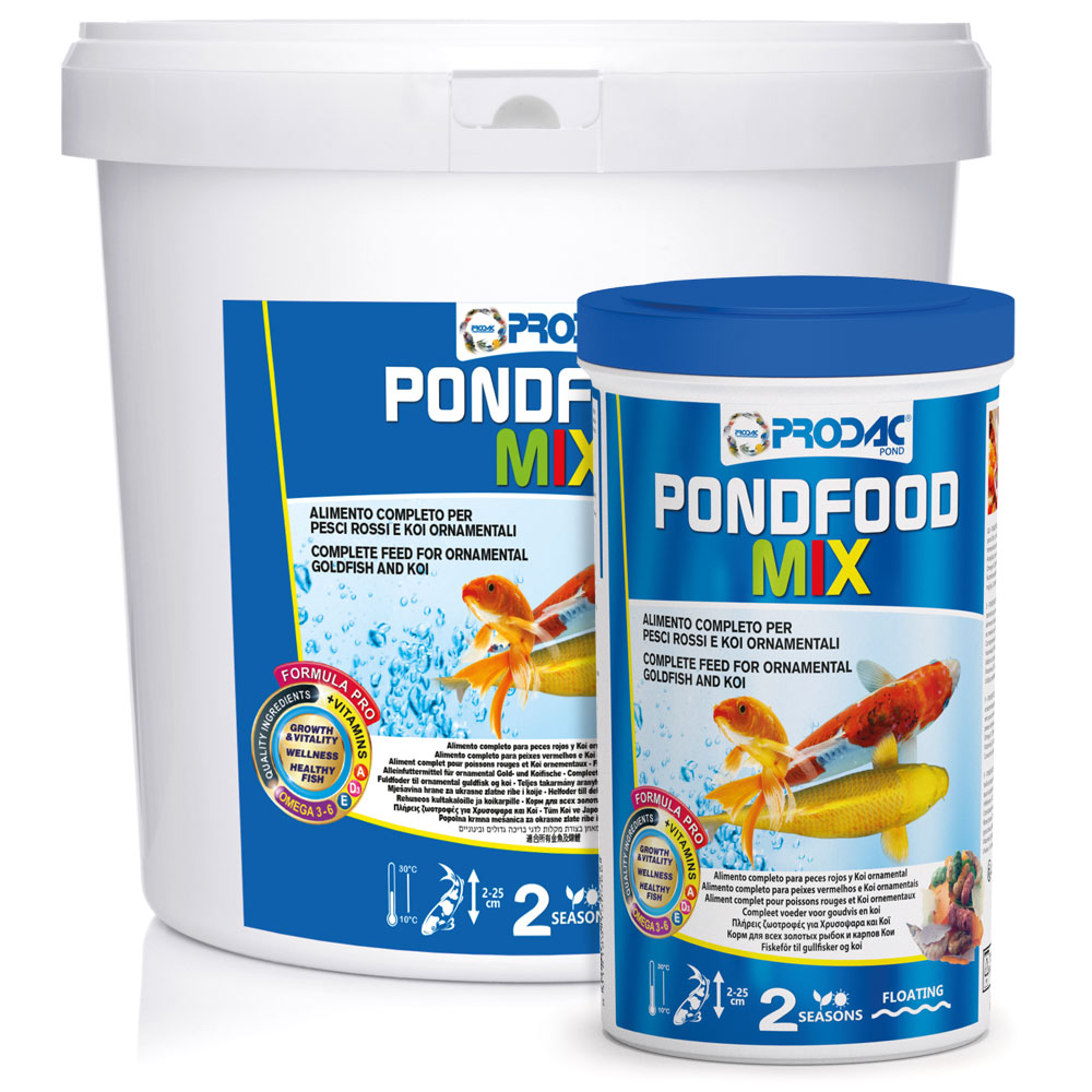 Complete feed mixed in flakes, sticks and shrimps for small and medium size ornamental pond fish.